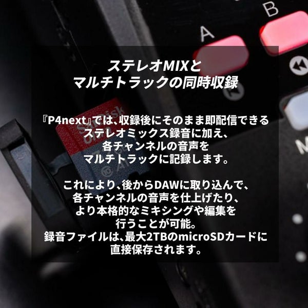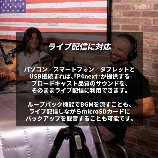 ※2 Windows/Mac/iOS/Android対応、USBで送りながらP4next本体にバックアップ録音が可能