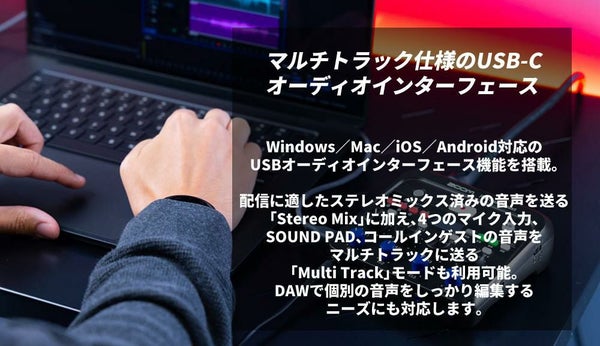 ・即配信できるステレオ録音か、各チャンネルを個別に記録するマルチトラック録音を選択可