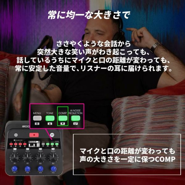 ・マイクと口の距離が変わっても声の大きさを一定に保つCOMP