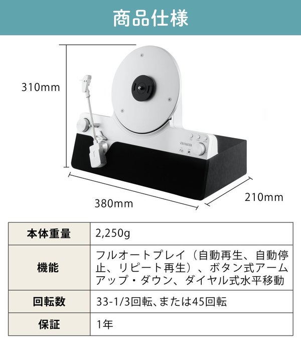 | 機能 | フルオートプレイ(自動再生、自動停止、リピート再生) ボタン式アームアップ・ダウン、ダイヤル式水平移動 |