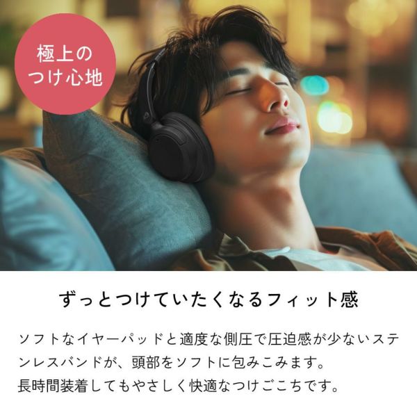 耳への負担が少なく、長時間の装着も快適です。