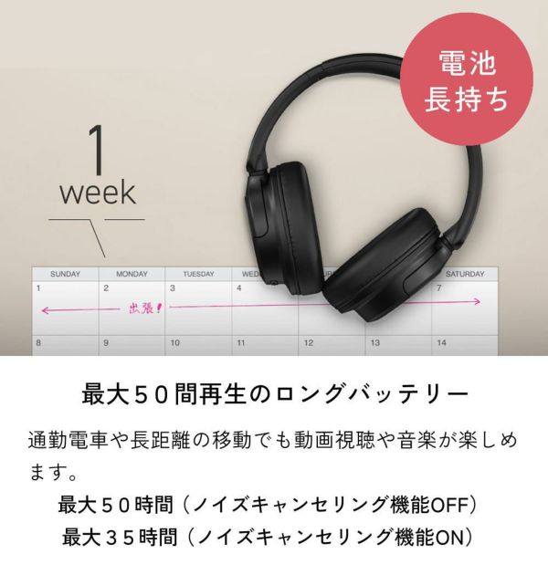 最大50時間再生のロングバッテリー