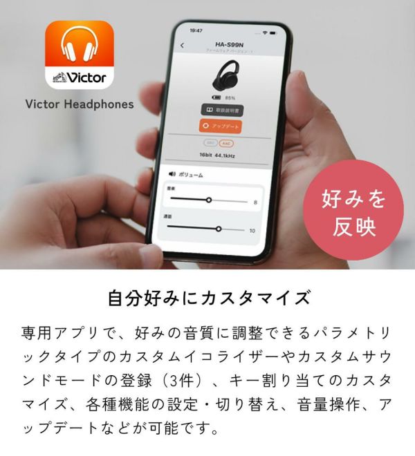 ビクターのワイヤレスノイズキャンセリングヘッドホン史上、最軽量*の本体約195gを実現。