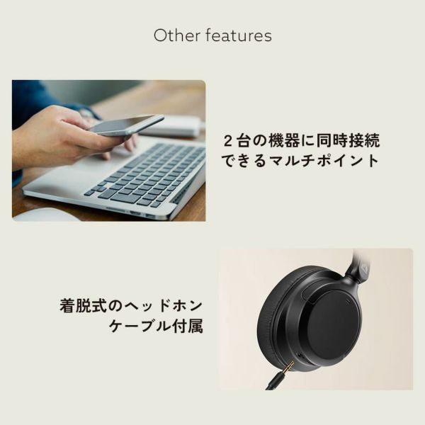 | 電池持続時間※3 | 約50時間(Bluetooth使用時) 約35時間(Bluetooth+外音取込機能またはノイズキャンセリング機能使用時) 約30時間(有線接続時+外音取込機能またはノイズキャンセリング機能使用時) |