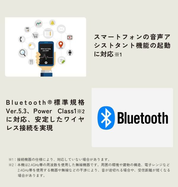 Bluetooth(R)標準規格Ver.5.3、Power Class1※2に対応、安定したワイヤレス接続を実現