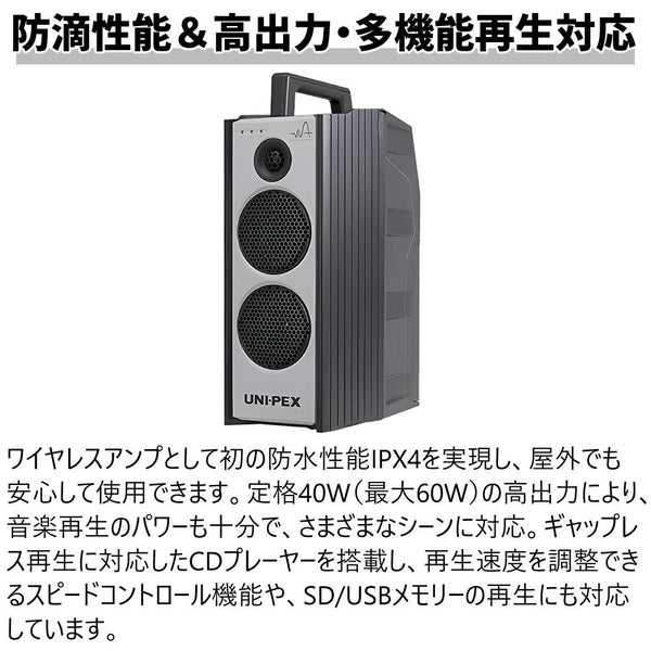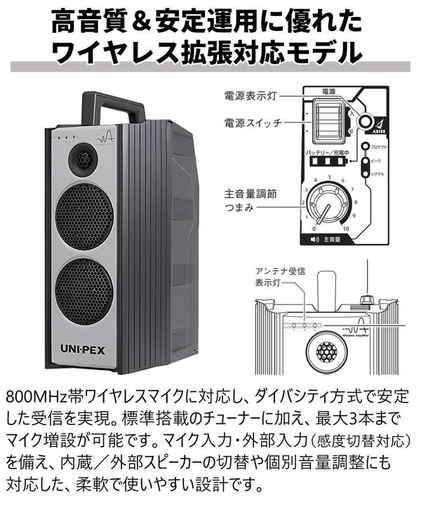 | 適合品 | DU-850A(ワイヤレスチューナーユニット)、MU-600(入力ユニット)、CDU-104(CDユニット)、SDU-201(SDユニット)、WBT-2001(ニカド蓄電池)、LD-WA7(外部DC電源コード)、WA-1K(収納カバー) |