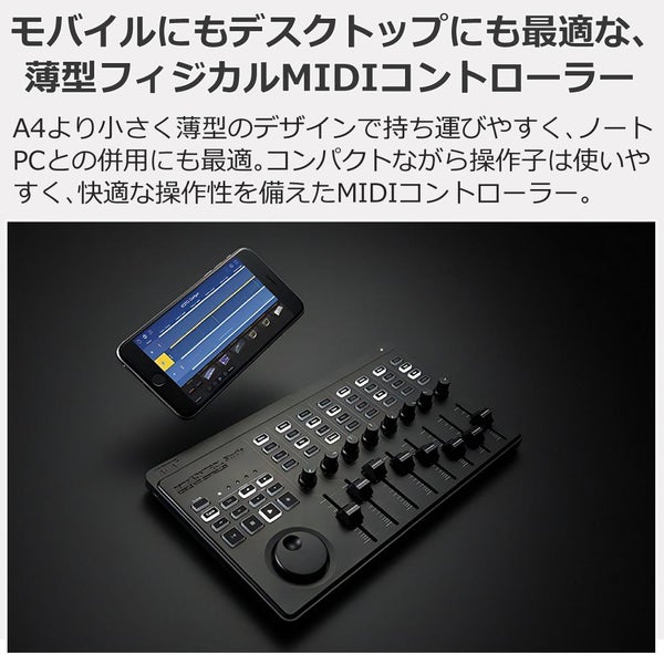 音楽をもっと感覚的に創造できる、コンパクトなモバイルMIDIコントローラーです。
