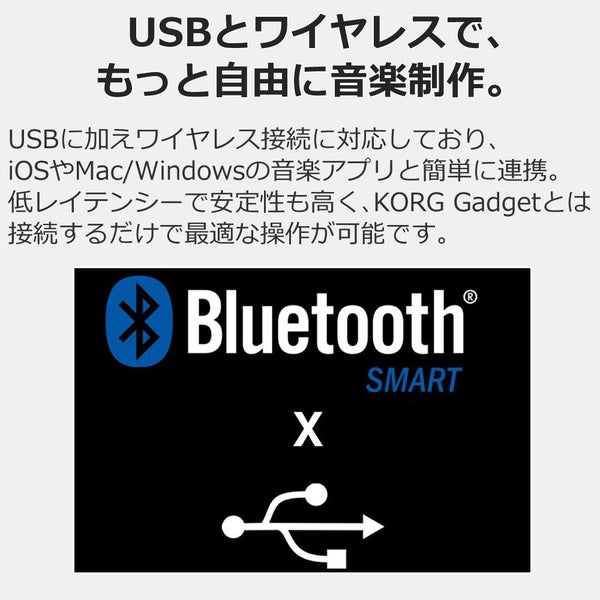 | Windowsワイヤレス接続 | 対応OS Windows 8.1 以降 (32bit/64bit) [KORG BLE-MIDI Driverが必要] 対応モデル Bluetooth 4.0に対応したWindows 8.1以降の動作するコンピューター |