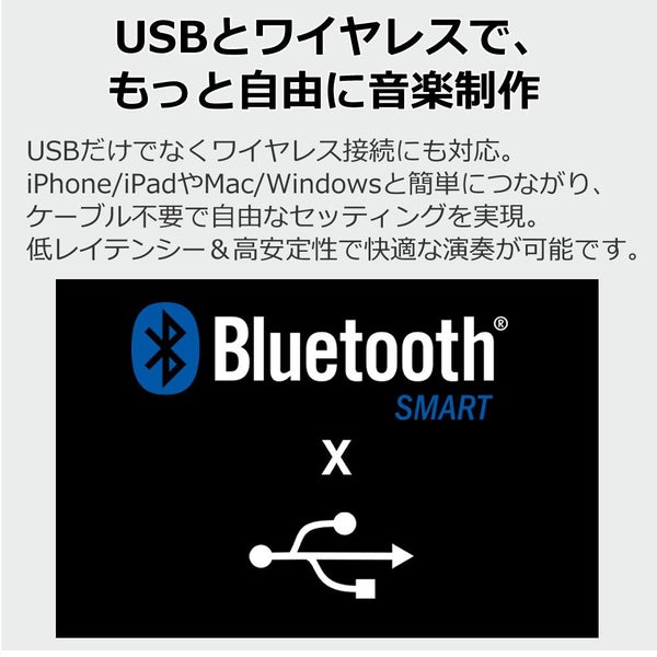 | 無線方式 | Bluetooth Low Energy(Apple BLE-MIDI準拠) |