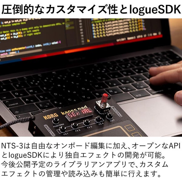 ・自由自在なオンボード編集とカスタマイズオプションを提供し、また、 Githubで利用可能なオープンな開発API(Application Programming Interface)を使用することで、専用のlogueSDK(Software Development Kit)を介して、ユーザーが全く新しいエフェクトを開発・作成することができます。