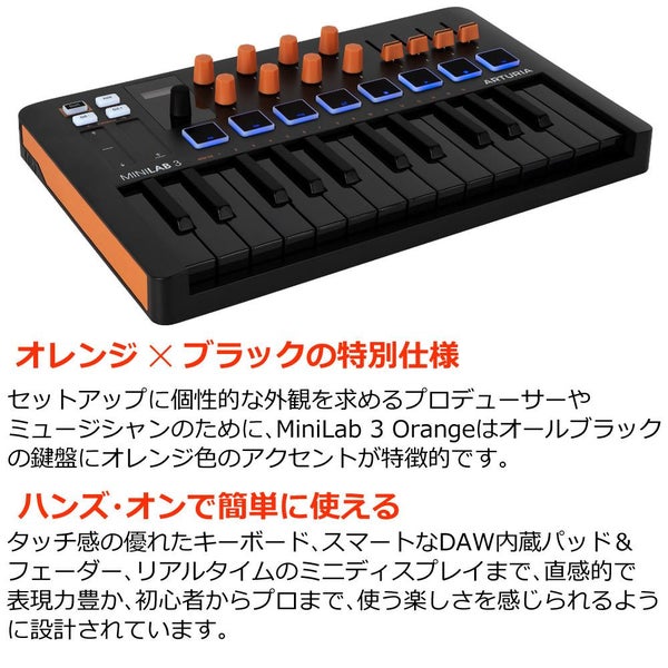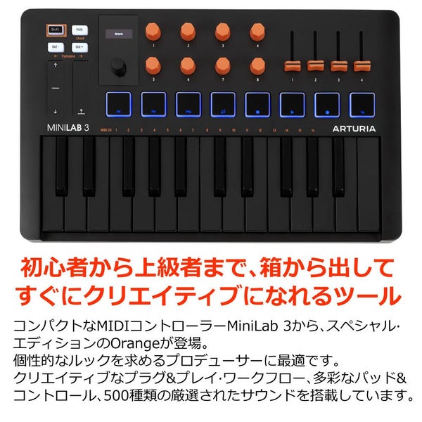 コンパクトなMIDIコントローラーMiniLab 3から、スペシャルエディションのOrangeが登場。