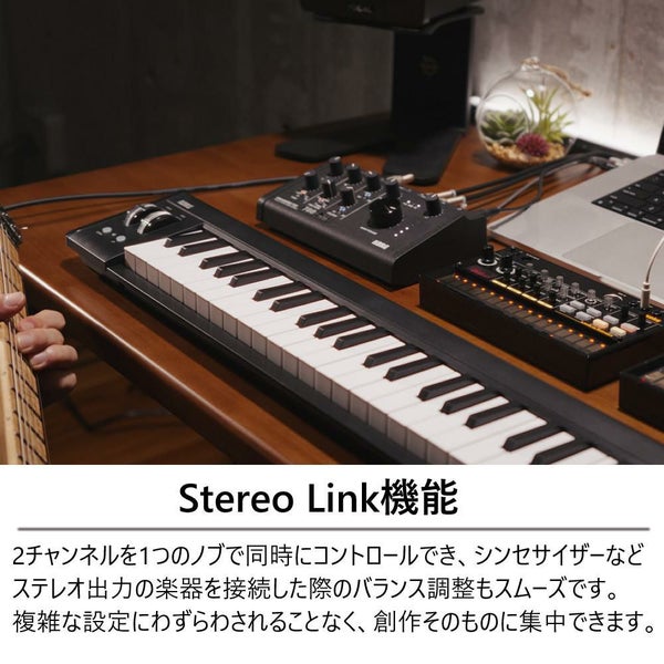 Stereo Link機能により、2チャンネルを1つのノブで同時にコントロールでき、シンセサイザーなどステレオ出力の楽器を接続した際のバランス調整もスムーズです。