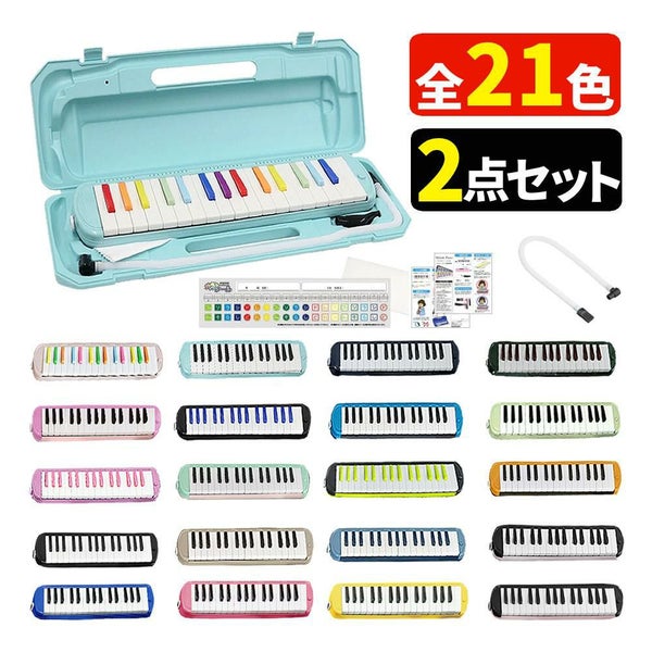 【付属品】鍵盤ハーモニカ本体(32鍵)、卓奏用ホース、立奏用吹き口、専用ケース、クリーニングクロス、ドレミファシール、取扱説明書 |