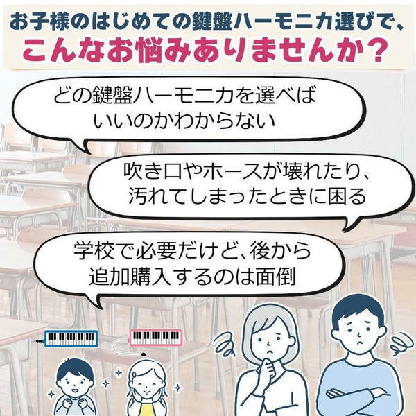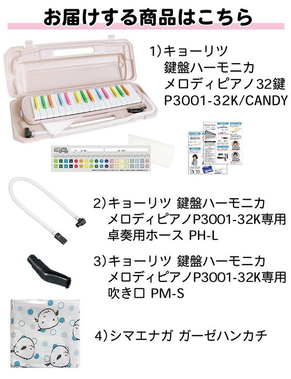 ※こちらの商品はYAMAHA鍵盤ハーモニカ「ピアニカ」・SUZUKI鍵盤ハーモニカ「メロディオン」ではございません。 P3001-32Kはピアニカやメロディオン同様に音楽の授業で使っていただくことは出来ますが、ホースや吹き口はヤマハ製ピアニカ・スズキ製メロディオンのものはご使用出来ませんのでご注意下さい。 |