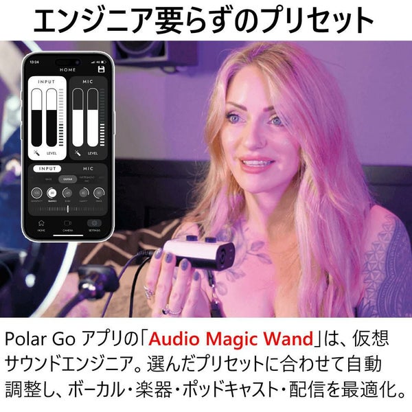 Polar Goアプリの「Audio Magic Wand」は、選んだプリセットに応じて自動で音質を最適化する機能です。ボーカルや楽器、ポッドキャスト、配信に幅広く活用できます。