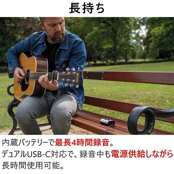 内蔵バッテリーで最大4時間録音可能。デュアルUSB-Cソケットにより、録音中も給電しながら長時間使用できます。