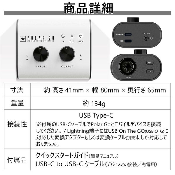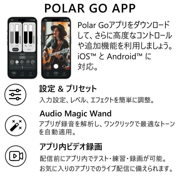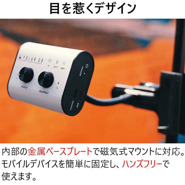 自宅でも外出先でも、どこでも高音質な録音を実現するオーディオインターフェース、 Blackstar の POLAR GO は、シンガーソングライターや配信初心者、 ASMR クリエイターに最適なアイテムです。ポケットサイズ の コンパクト 設計ながら、24bit/96kHz の 高解像度 録音に対応し、 ステレオマイク や ProCapture 機能で音のニュアンスを繊細に記録。 USB?C 接続 で iOS や Android、 macOS にも対応し、スマホとの連携もスムーズです。 モバイル録音 や 動画同時録画 も簡単で、 プラグアンドプレイ により直感的操作が可能。ループバック や ノイズコントロール、 ボーカル最適化 プリセット を活用すれば、 ポッドキャスト や 配信 にもすぐ活用できます。 リチウムイオンバッテリー 内蔵で最大 4時間駆動 し、フィールド録音やASMRにも対応可能。 コンデンサーマイク不要 で機材も軽量化。ASMR対応 の設計と、スマホマウント対応 により、クリエイティブな表現がすぐに実現します。 Magic Wand のように、手にした瞬間から録音の世界が広がる、まさに“持ち運べる スタジオ ”です。