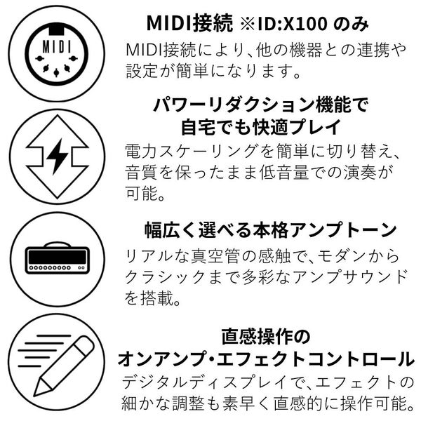 本物の真空管トーンのパワーを指先で体感してください。さらに、豊かなモジュレーションからリッチなディレイ、ダイナミックなリバーブ、そして轟くオーバードライブまで、35種類以上の内蔵エフェクトを駆使し、すべてリアルタイムでフルコントロール可能です。
