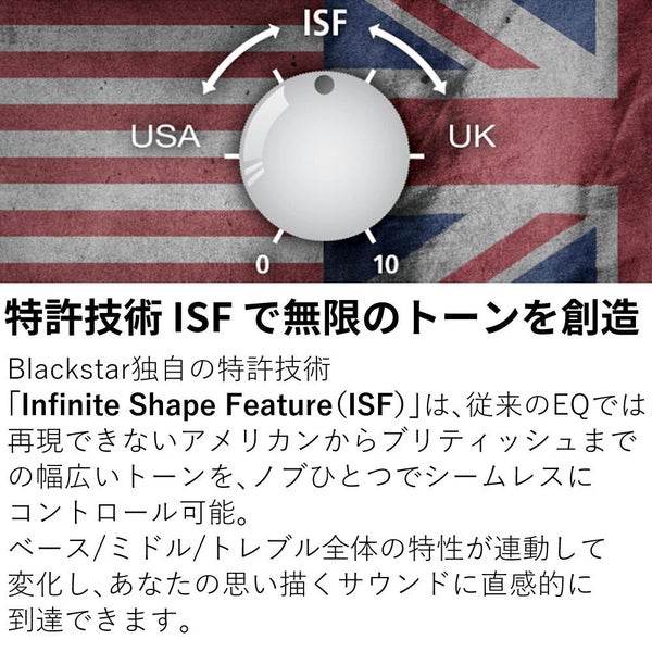 バンドEQと特許技術のISFを組み合わせることで、ブリティッシュなクランチからアメリカンでパンチの効いたサウンドまで、思い通りのトーンを自在にコントロールできます。