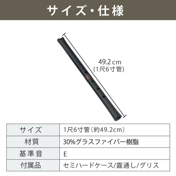 | 尺八本体 | 30%グラスファイバー入り樹脂/1尺6寸管/基準音:E |