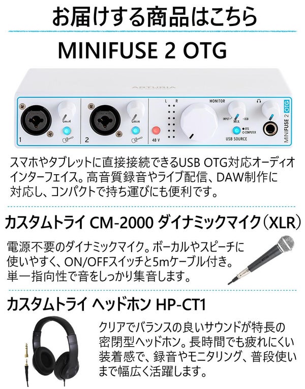 | | MiniFuse 2 OTGユニット USB-A - USB-Cケーブル USB-C - USB-Cケーブル |