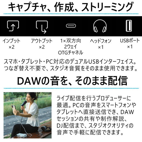 | | ダイレクトモニターとUSBソース切替により、DAWやOTGを柔軟にモニタリング |