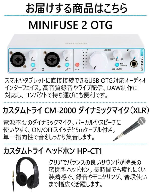 ARTURIA オーディオインターフェース MINIFUSE 2 OTG マイク/ヘッドホン付 録音 配信 3点セット(ラッピング不可)