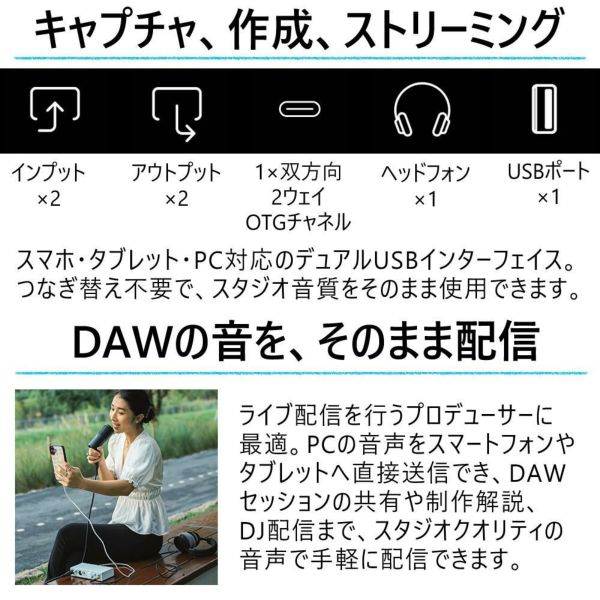 ライブ配信やモバイル制作に最適。高音質で、スマホ・タブレット・PCに対応