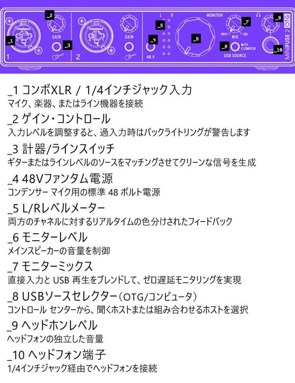 1)ARTURIA MINIFUSE 2 OTG デュアル オーディオインターフェイス