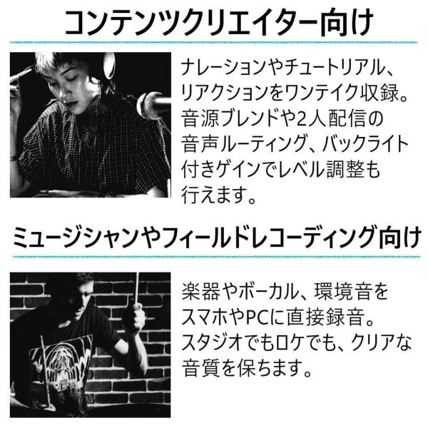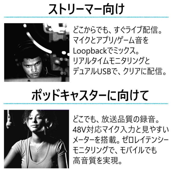 | | ループバック機能-ストリーミングや録音用に、PCのオーディオを直接取り込み可能 |