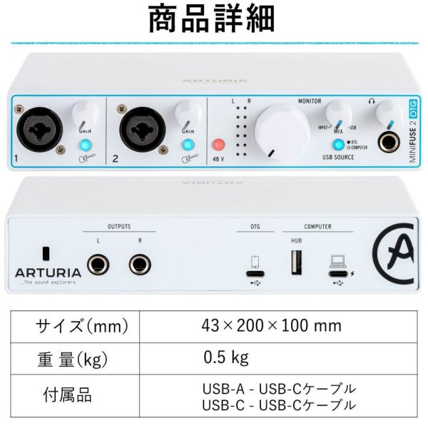 | | MiniFuse 2 OTGユニット USB-A - USB-Cケーブル USB-C - USB-Cケーブル |