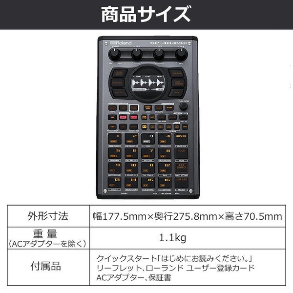 | インポート・フォーマット | WAF/AIFF/MP3 ※SP-404MKII APP使用時はWAV/AIFF/MP3/FLAC/M4Aに対応 |