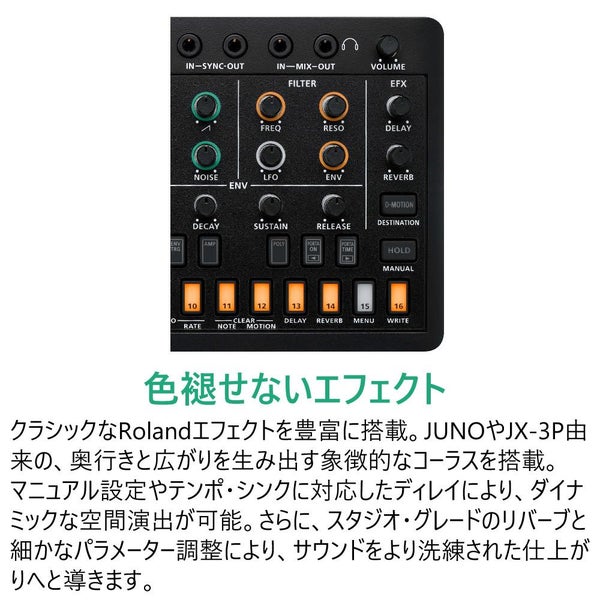 ・RolandのAnalog Circuit Behavior (ACB)テクノロジーを搭載した本格的なSH-101サウンドを実現