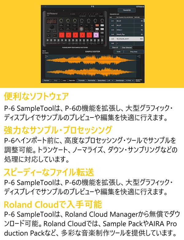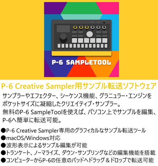 ・macOSおよびWindows用のソフトウェアP-6 SampleToolを使用してサンプル編集やサウンドのインポート/エクスポートが可能