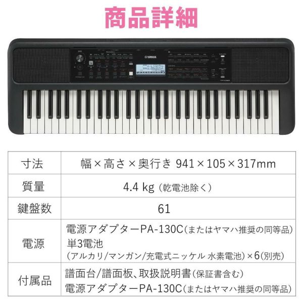 PSR-E273、E360、NP-15などの61鍵盤モデルに対応。
