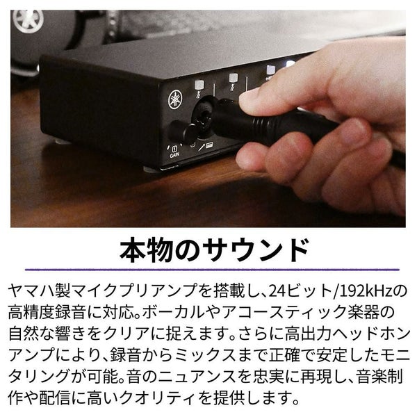 UR12MK3は、ヤマハ製マイクプリアンプを搭載し、最大24ビット/192kHzの高精度な録音に対応しています。