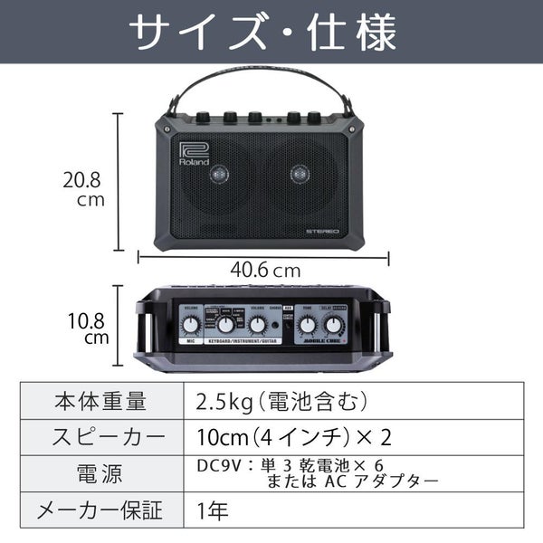 自前の楽屋や車内などでの練習/リハーサル用としてはもちろん、ステージ・ステージなどでのちょっとしたモニター用、マイクやオーディオ機器を接続しての簡易PAなど、小さなボディからは想像できない短期間での活躍が可能です。