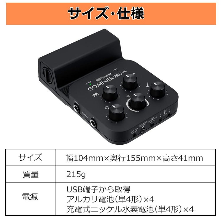 ●コンパクトで持ち運びに優れたGO:MIXER PRO-Xはモバイル・デバイスからのバスパワー駆動や、乾電池による4時間以上の動作にも対応。