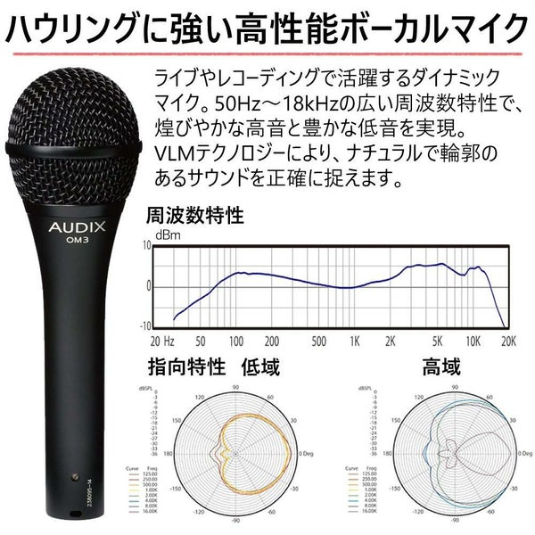 AUDIX OM3は、ライブボーカル向けに設計されたプロ仕様のダイナミックマイク。