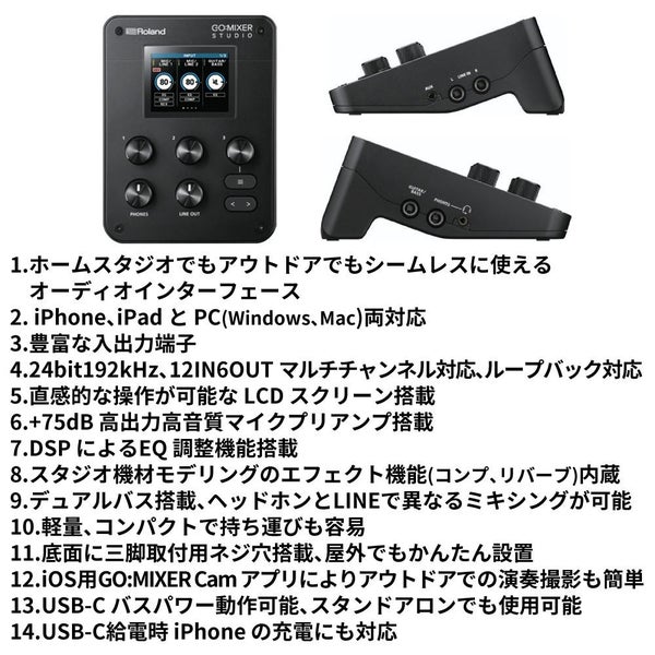 1)Roland オーディオインターフェース GO:MIXER STUDIO