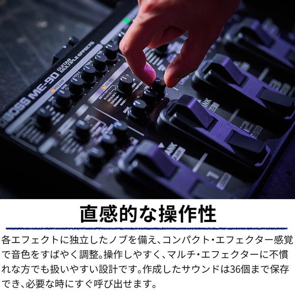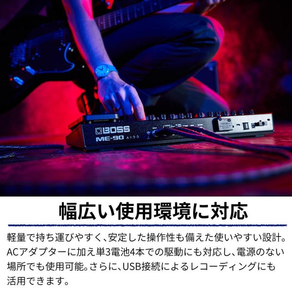 BOSSのMEシリーズは、軽量で丈夫なボディに、操作しやすいノブとフットスイッチを備えたマルチ・エフェクターです。