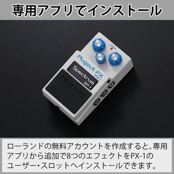 フリーのRolandアカウントを作成することで、専用アプリから追加で8つのエフェクトをPX-1のユーザー・スロットへインストール可能。