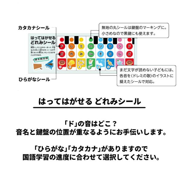 ■ まだ文字が読めない子どもには、各音を「ドレミの歌」のイラストに擬えたシールで対応。