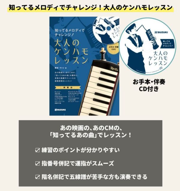 | 2) スズキ メロディオン出版物 知ってるメロディでチャレンジ!大人のケンハモレッスン |