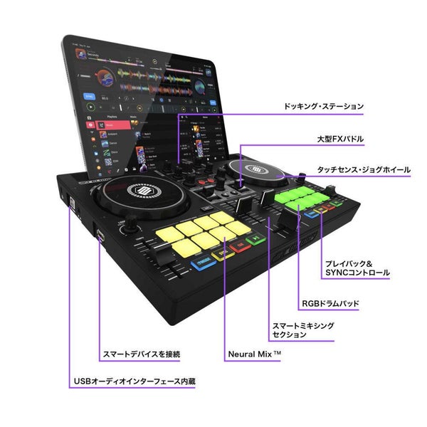 機能性を損なうことなく省スペースを実現し、iOS、iPad OS、Android、Mac、PCなど様々なプラットフォームに対応し、あらゆるDJにクリエイティブに必要なすべてのツールを提供します。