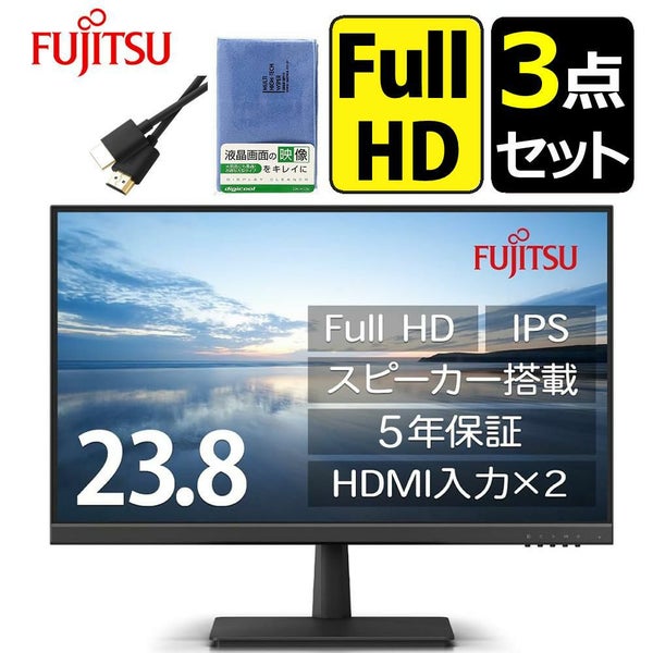 富士通 の 液晶ディスプレイ VTF24021BT は、23.8型 の IPSパネル を採用し、 フルHD 解像度で 鮮明な映像 を提供します。 ノングレア 仕様で 目に優しく、 ブルーライト軽減 や フリッカーフリー 機能も搭載。 高さ調整、 スイーベル機能、 ローテート機能 により、作業環境に合わせた柔軟な設置が可能です。 HDMI端子×2 や VGA端子、 スピーカー内蔵 など、 ビジネス向け にも最適な機能を備えています。