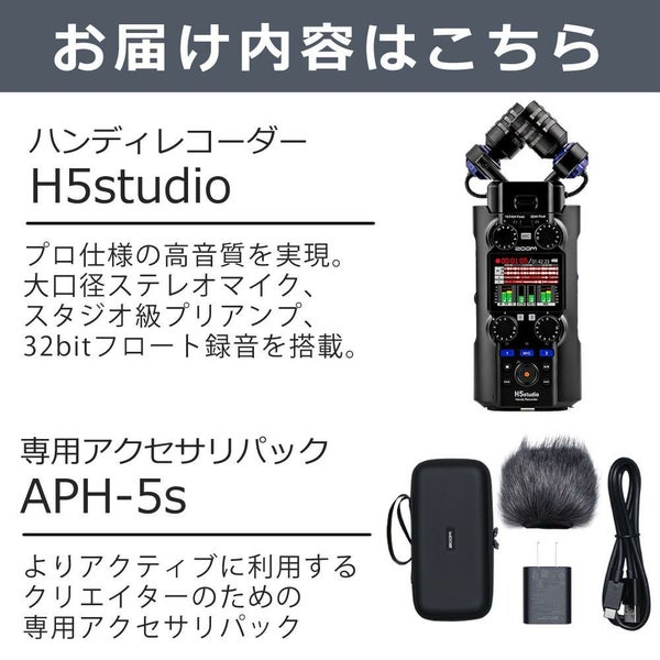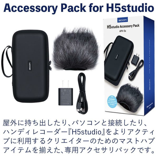 ●屋外に持ち出したり、パソコンと接続したり、ハンディレコーダー『H5studio』をよりアクティブに利用するクリエイターのためのマストハブアイテムを揃えた、専用アクセサリパックです。