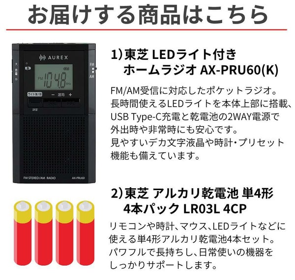 1)東芝 ポケットラジオ LEDライト付き AX-PRU60(K)ブラック