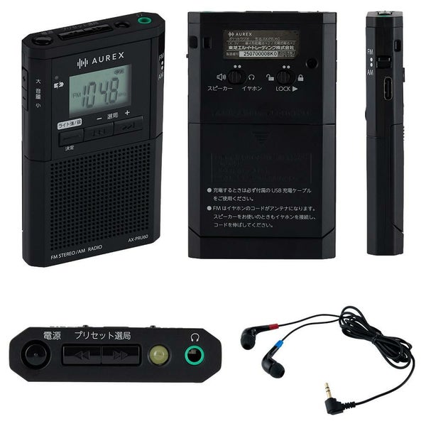 長時間 LEDライト搭載 の LEDライト付き ポケットラジオ 「 AX-PRU60 」 は、 USB充電 と 乾電池 の どちらでも 使える ポータブル ラジオ です。 ワイドFM や AMFM / FM/AM 受信 に対応 し、 緊急時 や 日常 の 情報収集 に 便利。 イヤホン端子 付き で 好み の イヤホン と 接続 可能。 コンパクト で 軽量 な ボディ に クロック 機能 も 搭載 し、 防災 用 や アウトドア でも 活躍 する 便利 な LEDライト付きラジオ です。
