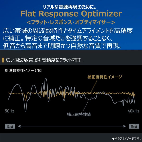 広い周波数帯域とタイムアライメントを高精度に補正し、低音から高音までバランスよく再生します。